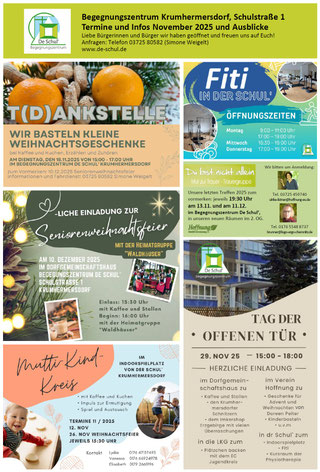 03. November 2025 Infos und Termine des Begegnungszentrums November 2025 tagPlaceholderTags: Aktuelles Kommentar schreiben Kommentare: 0