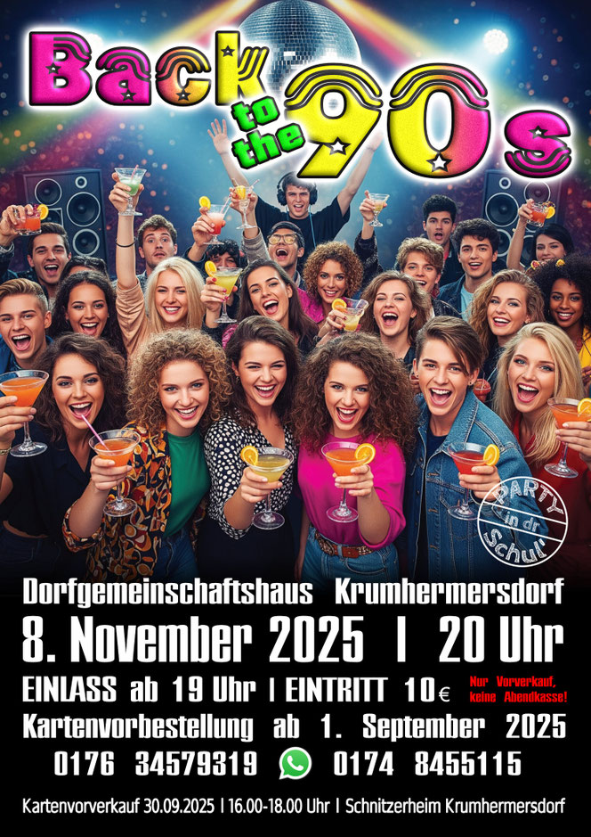 Die Neuauflage der 90er Party "Groß-O. Revival" vom März 2024 steigt am 8. November 2025, natürlich wieder in Dr Schul'.